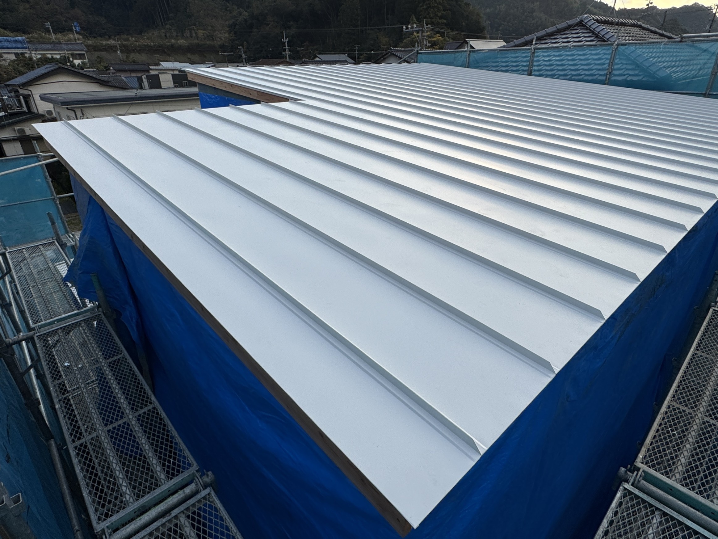 ガルバの屋根を施工しています。