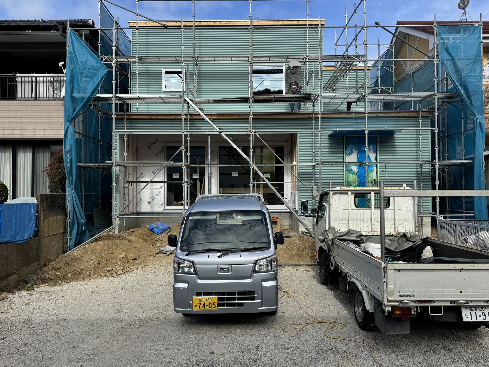 外壁のガルバリウム鋼板を貼っています。