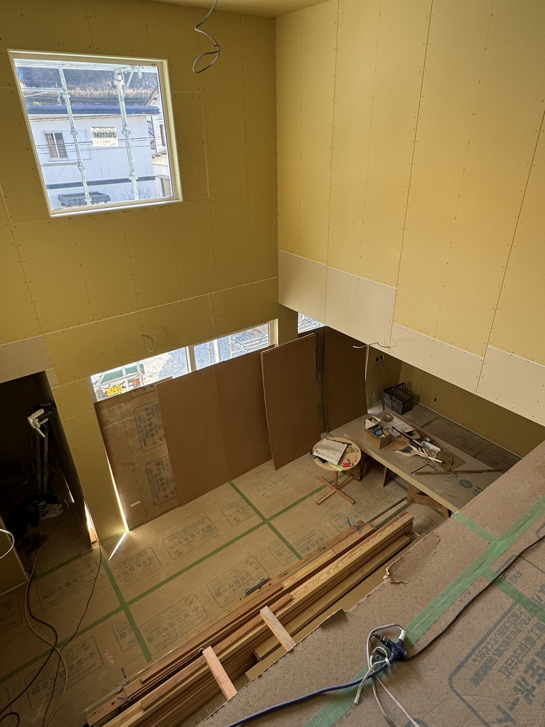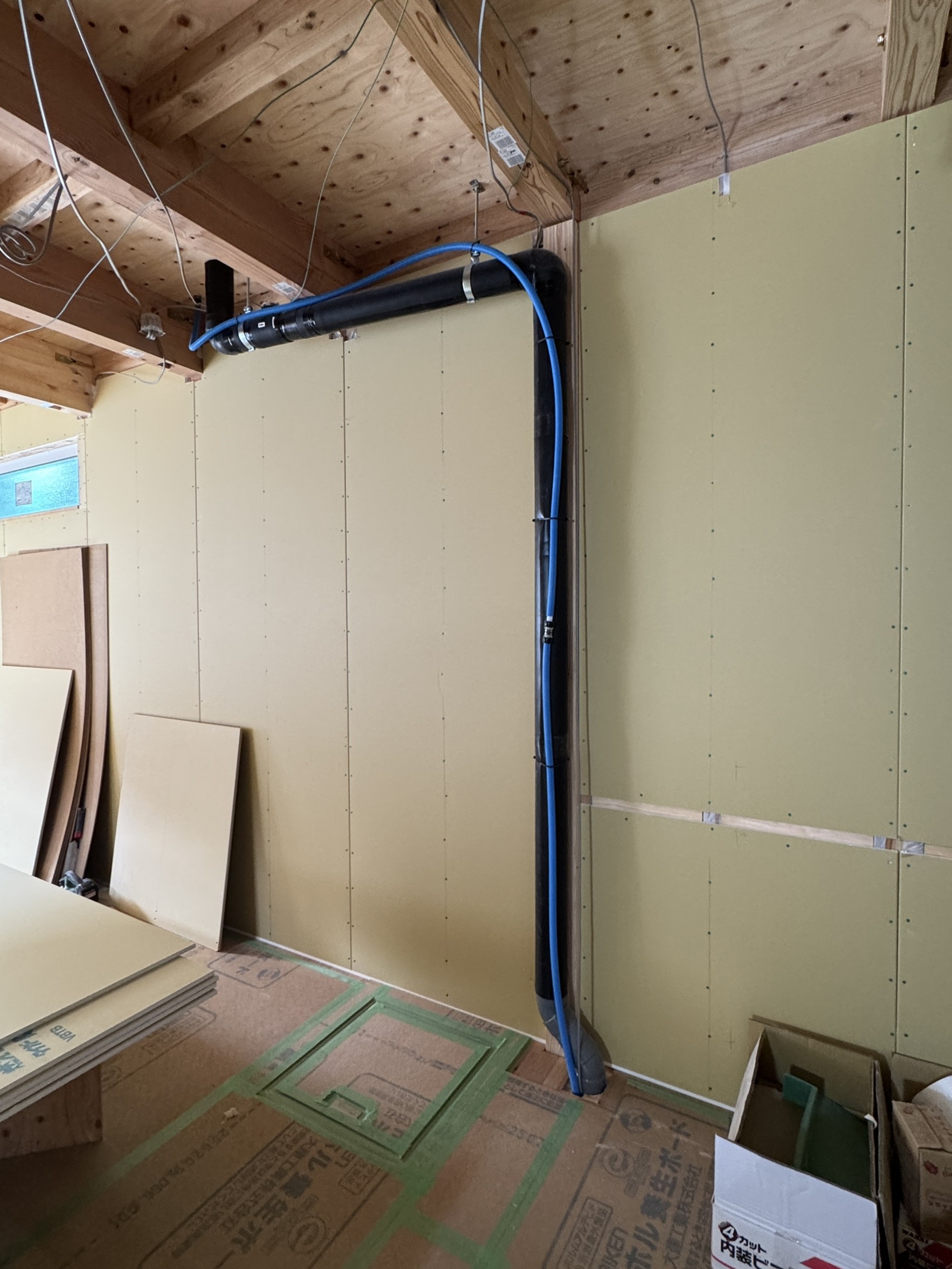 室内石膏ボードを施工しています。