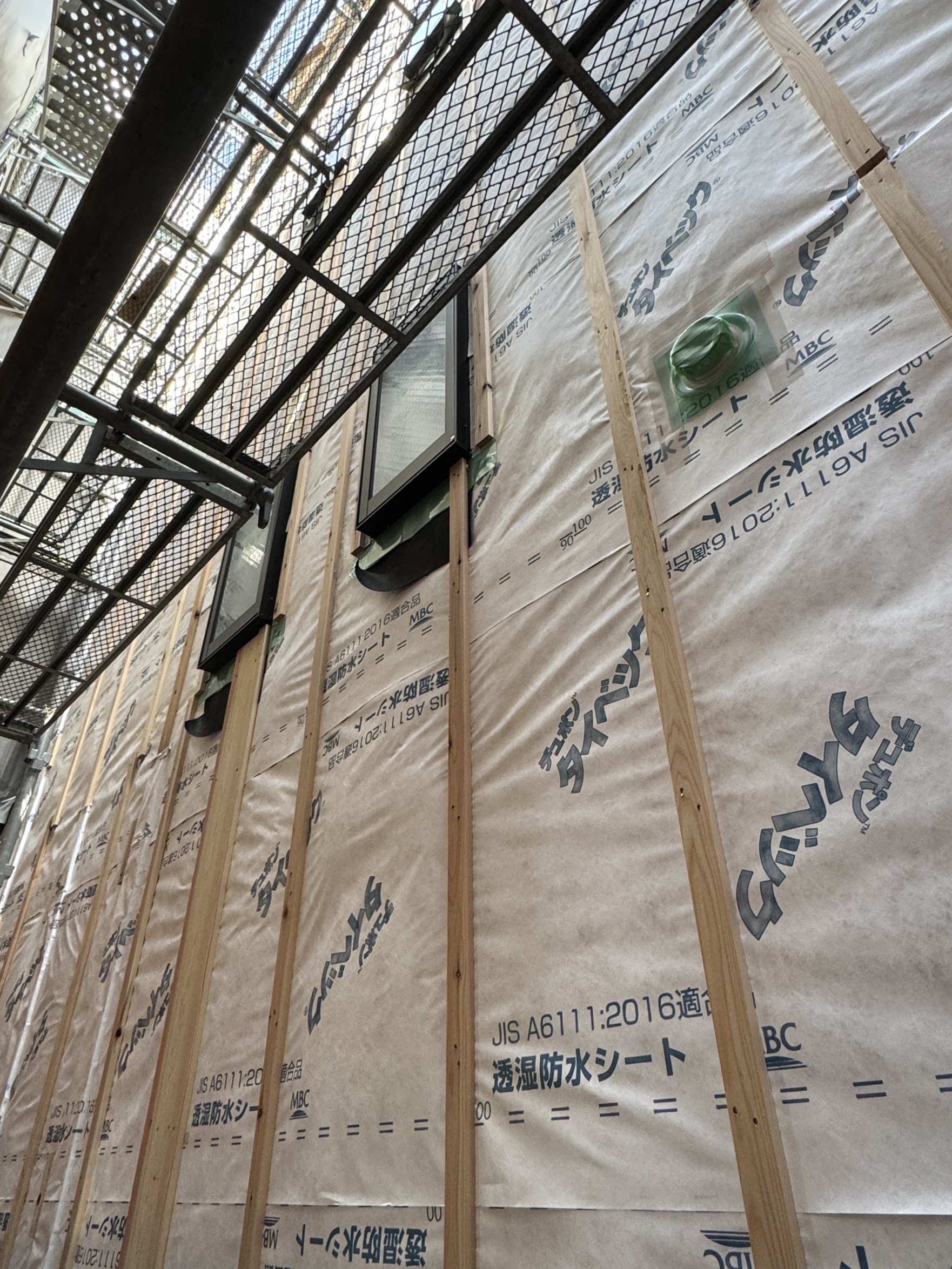 外壁周りの通気胴縁を施工しています。