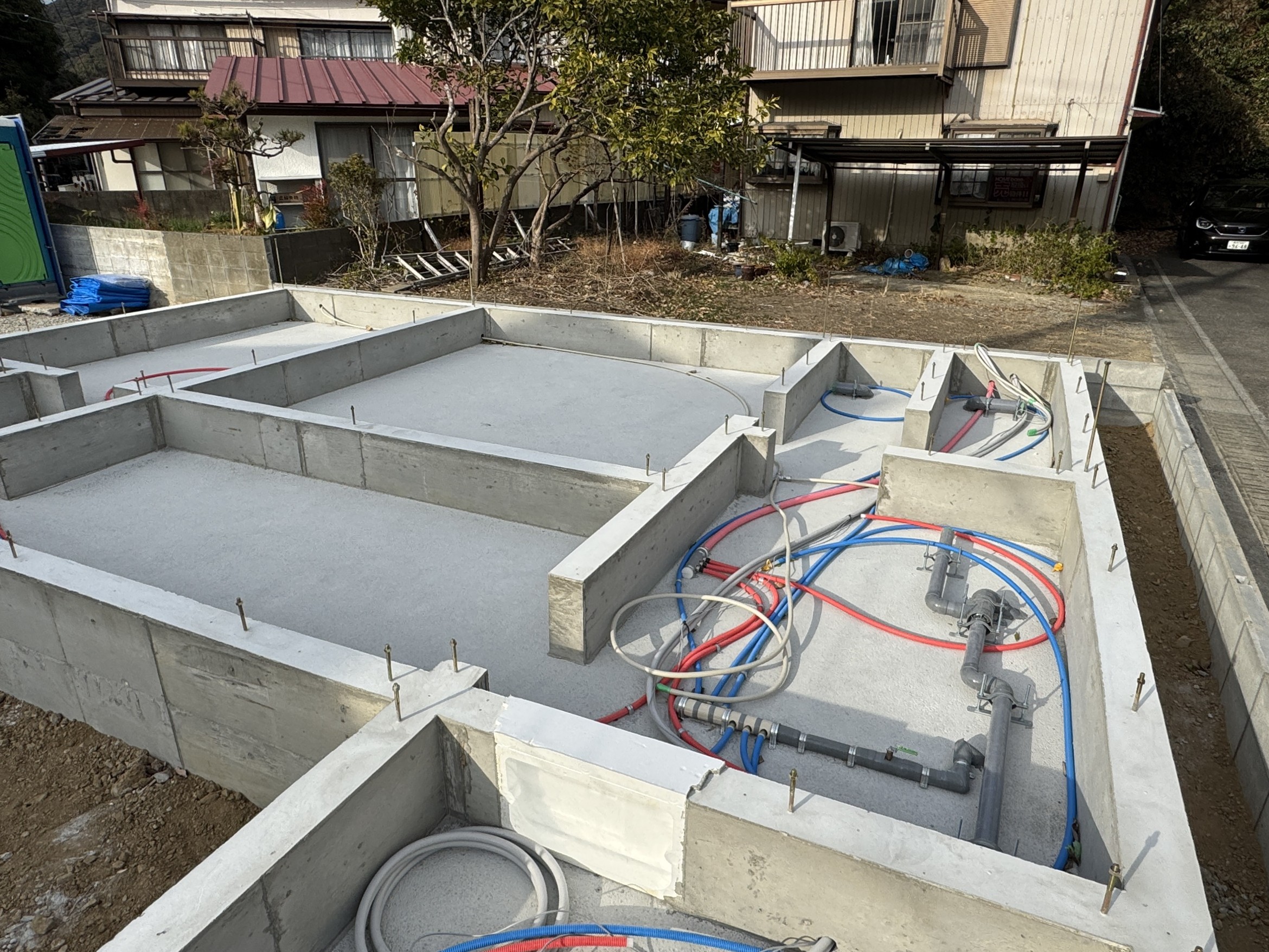 配管工事中。来週には棟上げ予定です。