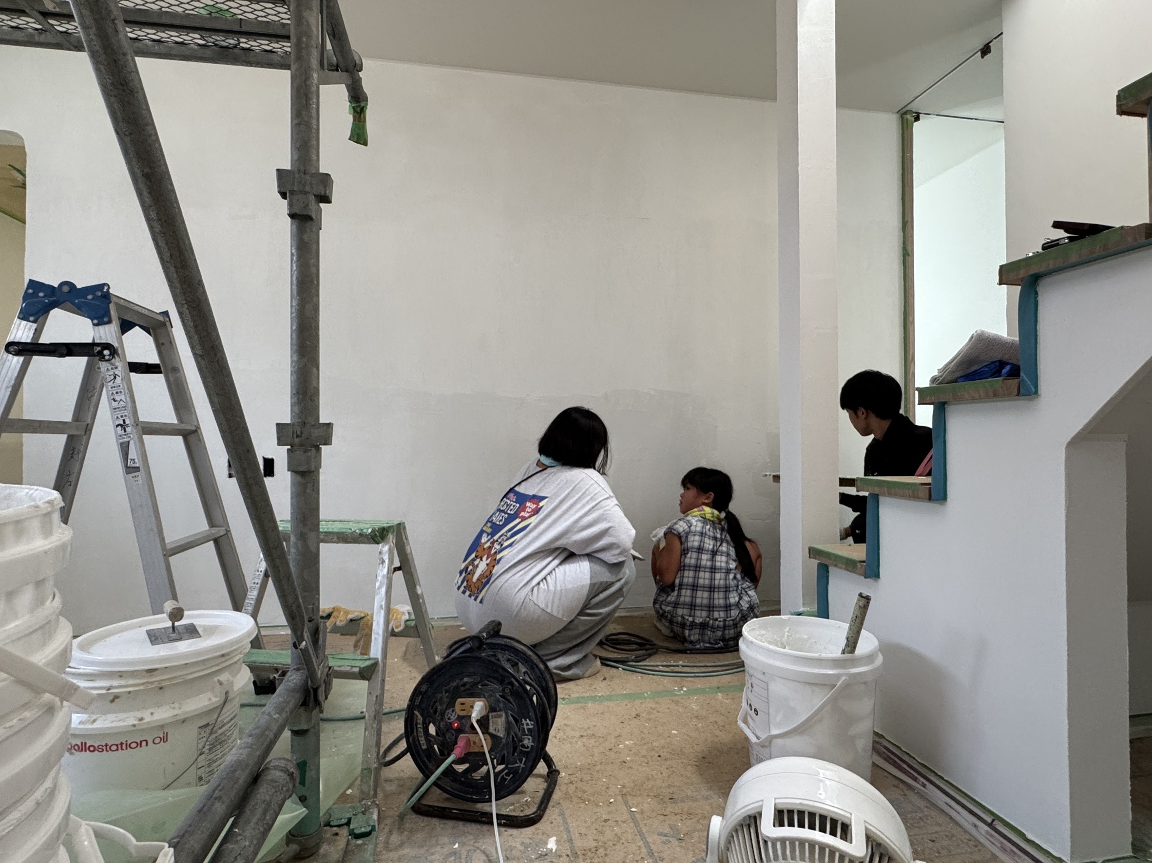 お施主様も参加しての壁塗りです。