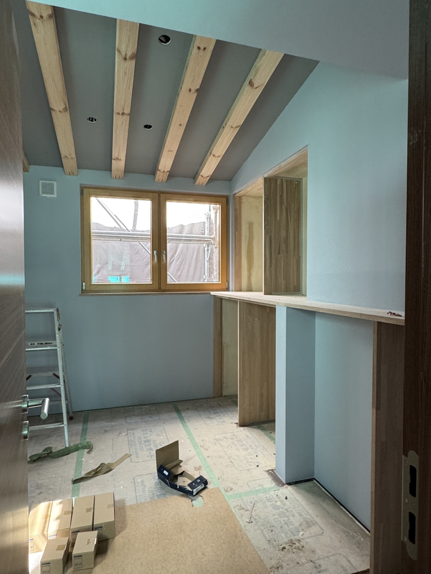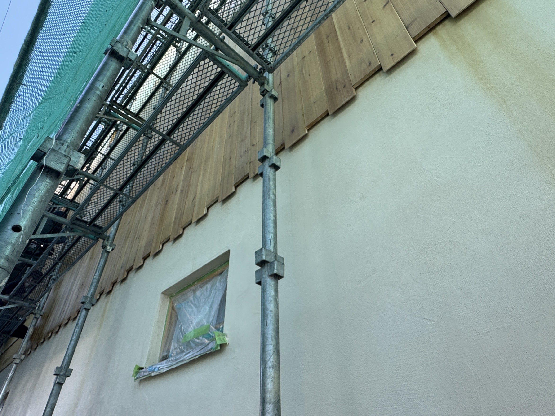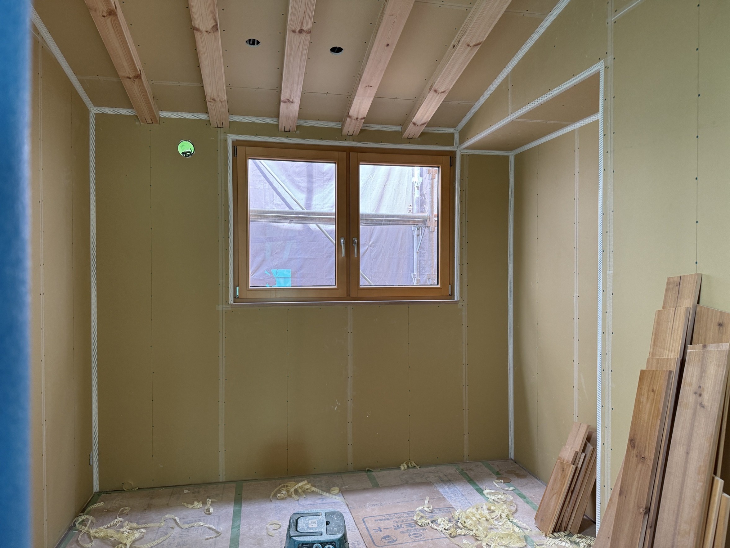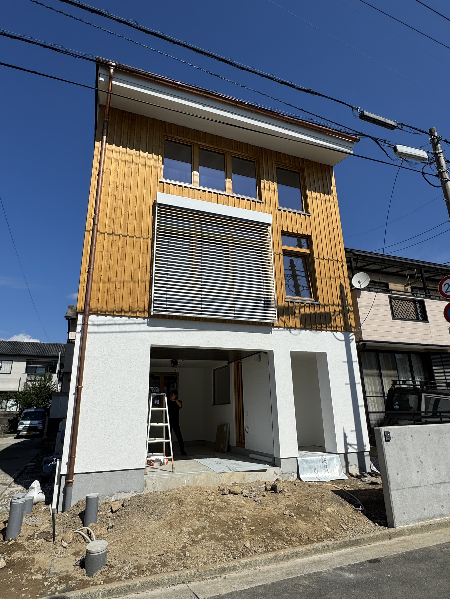 『木学の家』仕様ECOHOUSEの防水シートを施工しています。