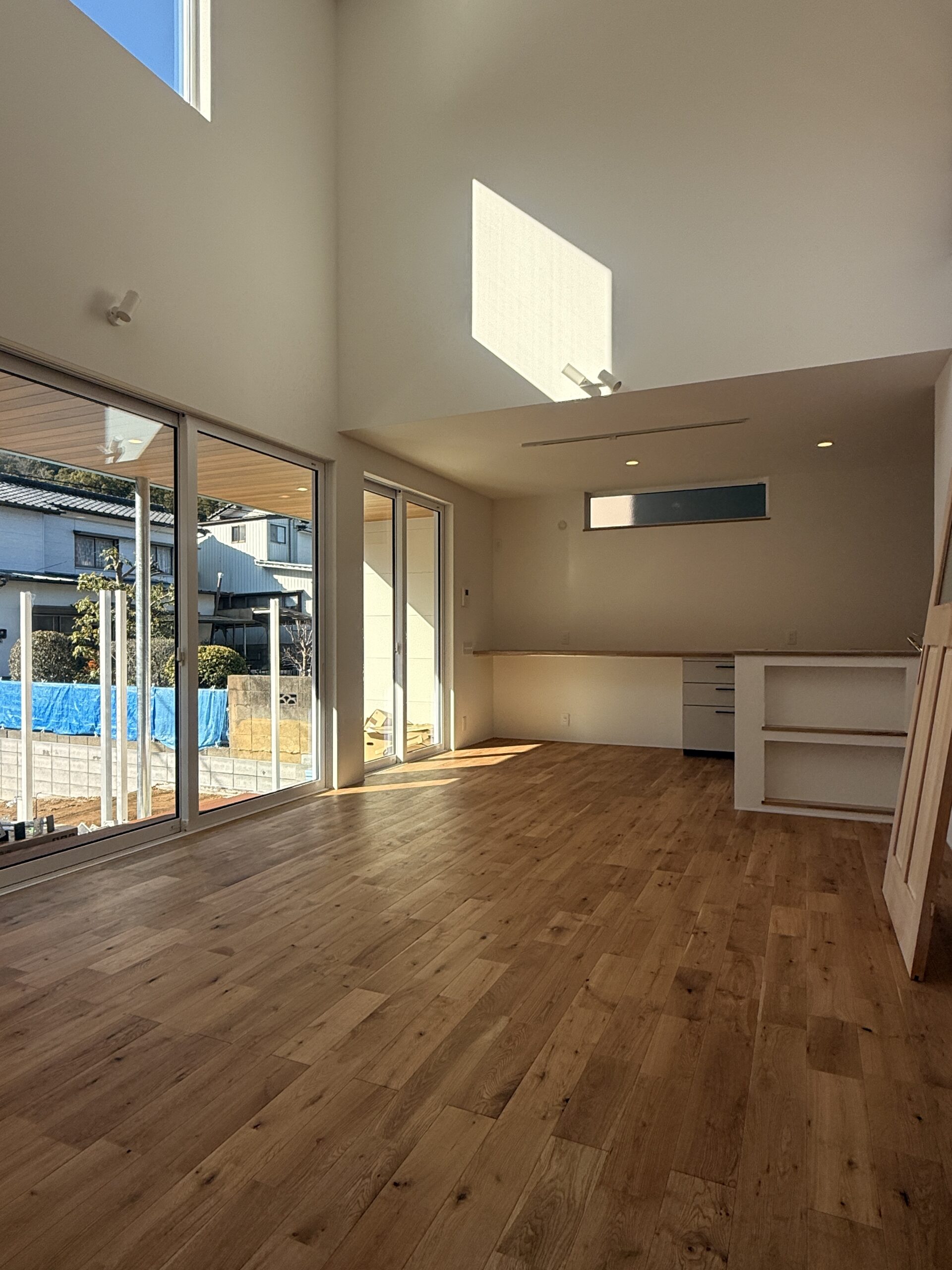 外壁ガルバの色目と木製目隠しが目を引く外観